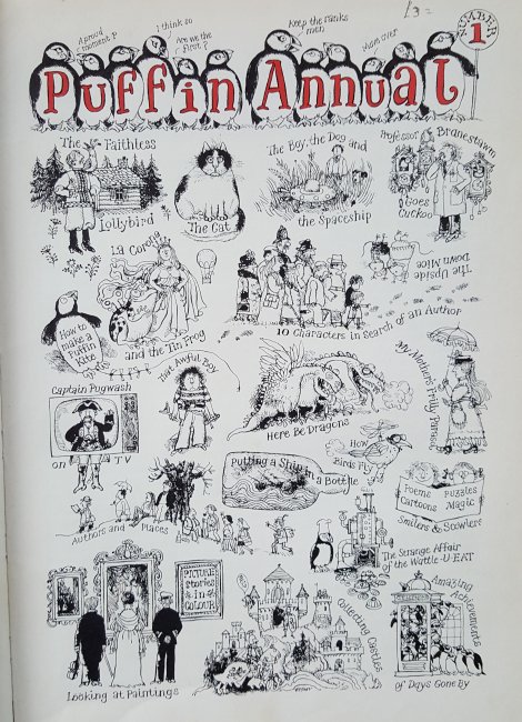 At the beginning of 1967 Kaye Webb had launched the Puffin Club to great success, in fact more success than anticipated as demand for membership soared, which for a club dedicated to the children’s output of a publisher was unheard of. The quarterly magazine that members received was full of stories, reviews, puzzles and things to make and in 1974 it was decided to produce a larger version, for sale not just to club members, and make it an annual. This post is going up on the 1st December so just about when the annuals were hitting the shops when I was a child. I grew up in the 1960’s and 70’s, probably the heyday of the annual in the UK. What had started as simply a reprint of the weekly child’s magazine with The Boy’s Own and The Girl’s Own papers had expanded via The Rupert Annual (started in 1936 and still going strong) along with The Beano and Dandy comics and of course the much admired The Eagle annuals from 1950 to the late 1960’s all of which featured new material especially for the annual. TV shows got in on the act, Blue Peter has had an annual every year since 1964 and most other children’s shows followed suit especially Doctor Who. Even films spawned annuals, I have The Star Wars annual from 1977, the year of the first film. The Puffin Club had to have an annual, the problem was Penguin Books had never done anything like this before.
