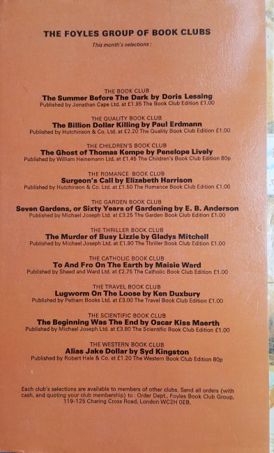 This is one of my few remaining books from the Foyles Children’s Book Club, that I was a member of from about the age of five or six up to at least twelve. I discussed the club in an earlier blog and I was either eleven or twelve when this book came out in the club edition in 1974, it doesn’t say which month so I don’t know for sure. These monthly books were really formative of my early reading and as can be seen below from the back cover of this edition they were a real bargain. You could also have books from any of the other clubs either as well, or I think instead, and it was around this time I broadened my reading by dabbling with the science and travel clubs as well before leaving the club as I discovered science fiction and would rather have the choice in my local book shop rather than a monthly book in the post. I am forever grateful to the Children’s Book Club though and I hope there is something similar still going on somewhere.