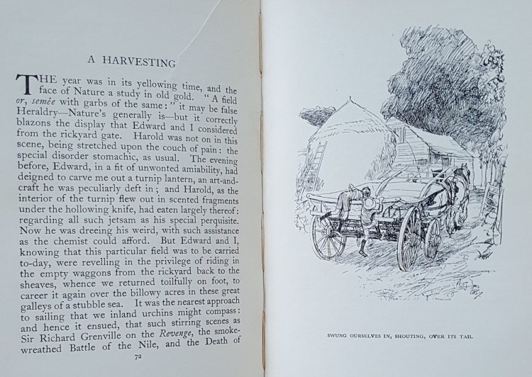 The stories are delightfully and really evoke a long gone period in mid-Victorian England, as well as harvest time depicted above they encounter mounted soldiers in one of the lanes all dressed up in regimental finery with red jackets and plume helmets so very different to the modern military. There are stories of Charlotte, the youngest girl, playing with her dolls and telling them off for misbehaving, the three boys are always in and out of the river or exploring the woods or generally being where and doing what they shouldn’t be, often in the company of Charlotte if not her elder sister Selina. The relatives the children were staying with were clearly quite well off, the house appears to be quite large and there are servants hence the opportunity for them to enjoy their childhood despite regular complaints about having to do schoolwork. For those wondering ‘dreeing his weird’ is a Scottish expression meaning to accept your fate, so clearly Harold had ended up with a tummy ache after all that raw turnip but had recognised that his illness was entirely his own fault so wasn’t complaining about it. None of Grahame’s actual brothers and sisters match the names of the children in the book or its sequel ‘Dream Days’ where Charlotte appears again in the short story ‘The Reluctant Dragon’ which of all of Grahame’s short stories is easily the best known although the rest of ‘Dream Days’ doesn’t really live up to this gentle fantasy.