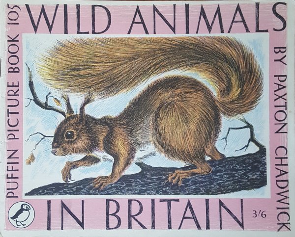 Again written and illustrated by Chadwick, Wild Animals in Britain was printed in April 1958 and was never reprinted. This was not uncommon with Puffin Picture books, indeed 66 of the 119 books issued in this series by Penguin were not reprinted, so the fact that his first two books went through multiple printings says a lot for how well received Chadwick’s books were. The title of this one is somewhat inaccurate as the only creatures included are mammals and reptiles but I suppose ‘Wild mammals and Reptiles in Britain’ is a bit wordy for a title. In all forty one species are illustrated, thirty five mammals and six reptiles ranging from the insectivores such as hedgehogs and shrews, through bats, rodents, hares and rabbits along with the bigger mammals such as badgers, foxes and various species of deer. Amongst the reptiles are the two snakes above, and there is a particularly fine painting of a grass snake on the rear cover. It’s a lovely book and the inclusion of brown on the pages that would normally be just black and white (as seen on the page with the snakes) just lifts the book above the normal format Puffin Picture Books.