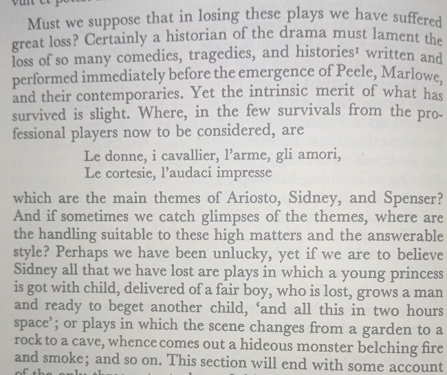 Dramatically the hundred years covered here yield little of real substance but they set the ground for what was to follow and as the Elizabethan proverbs say “a bee sucks honey out of the bitterest flowers” and “out of a little spark came a great flame” within a decade we would have Christopher Marlowe (Dido and Tamburlaine both 1587), Ben Jonson (various minor plays he didn’t really get going until the late 1590’s) and of course William Shakespeare (first play Richard III – early 1590’s date uncertain). It has definitely been an interesting read even though it has given me little in the way of encouragement to delve into the plays of this time themselves. The massive leap in quality of play-writing and indeed performance at the end of the Elizabethan period is remarkable and it is no wonder that Shakespeare is still the most widely performed author in the world.