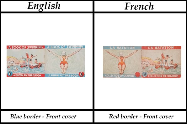 I am indebted to the Penguin Collectors Society for their invaluable Checklist of Puffin Picture Books which includes a full listing of these books so that I could check each one as I obtained it, and the checklist is the source of a lot of the information in this blog. Whilst this book lists most of the differences between the English and French illustrations it doesn’t show the variations, so below I will do so as I think it is interesting to see just what cultural differences were picked up in the changes. Firstly let’s list the seven books where it is simply a text translation difference and as you will quickly spot there are several obvious title changes: