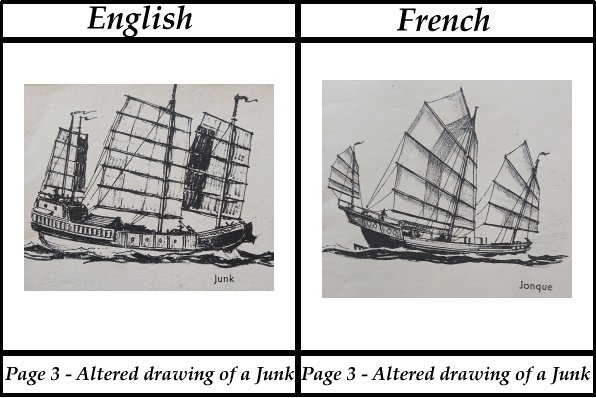 Now we get to the book with the most changes between the two versions, all of which are included in the checklist and we start on page three with a new drawing of a Chinese Junk.