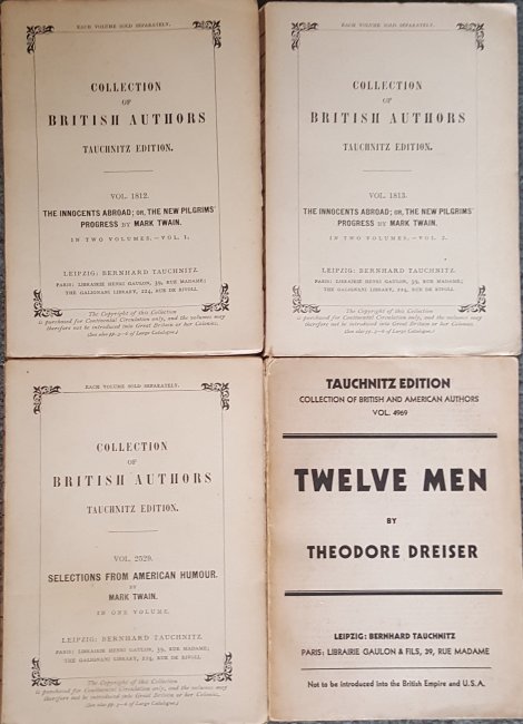 This time there were only six books issued at the same time and no suggestion that a hundred thousand copies of each were being printed. Two were reprints Anna of the Five Towns (33, March 1936) and The Grand Babylon Hotel (176, November 1938) along with four that were new to Penguin (996 to 999) and as can be seen there were various issues with copyrights in Canada and the USA.