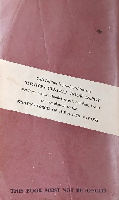 This edition was published by Collins in 1946 with a portrait of Margery Sharp on the cover as part of their short lived White Circle paperback range and is particularly notable as it is from the roughly 160 titles in this series also published as a Services Edition as explained on the rear cover, below. Most of the paperback printers during WWII printed Services Editions of books in their normal range, partly for patriotic reasons but also because doing so gave them access to more paper which was in short supply. None of them could be resold and should, in theory, be returned to the central book depot or passed on amongst the troops, as a consequence Services Editions are much sought after by collectors and when they are found are usually in fairly poor condition.